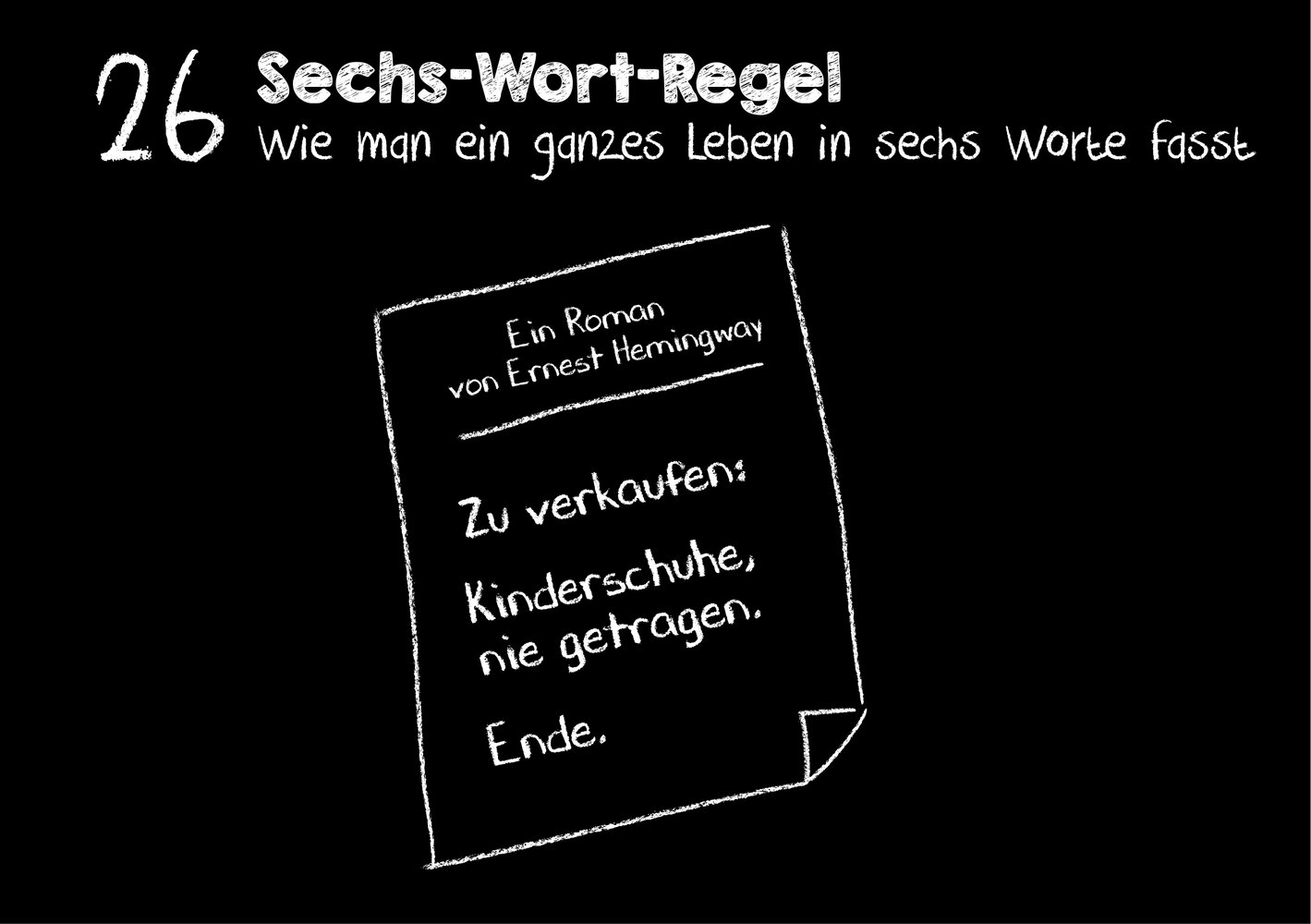 In Folge 21 halten wir uns kurz und sagen doch alles wichtige: Die Sechs-Wort-Regel.