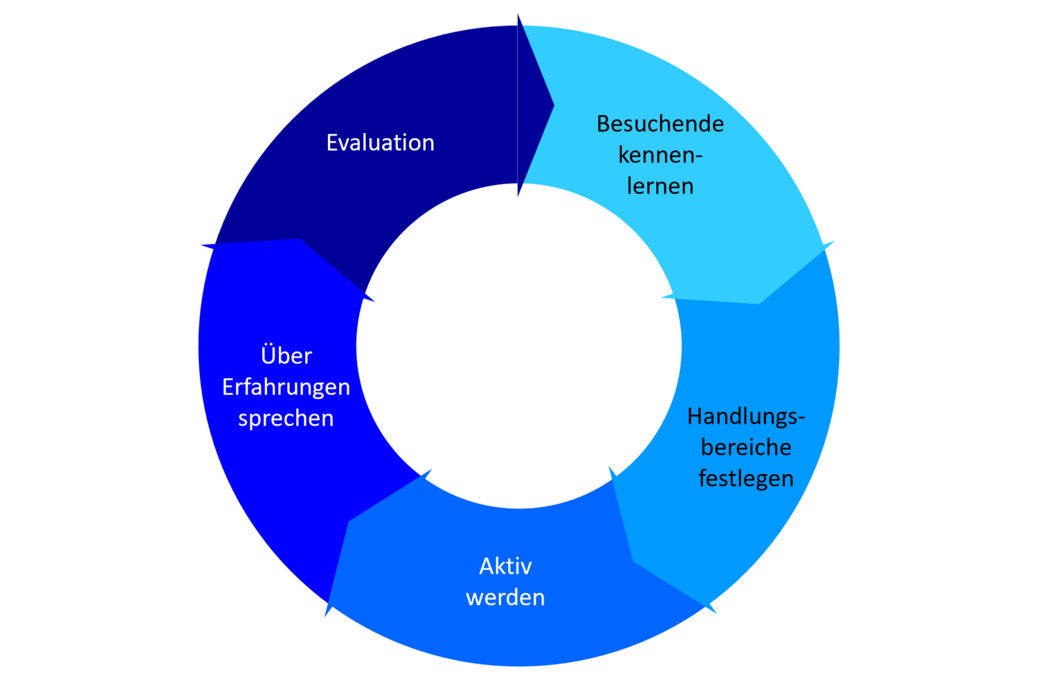 Mit diesen ersten Erkenntnissen fällt es nun deutlich leichter festzulegen, wo man als Erstes handeln möchte. Denn grundsätzlich gibt es in fast allen Institutionen sehr viel bezüglich Inklusion, das in einer idealen Welt angepackt werden sollte. Darin steckt aber ein grosses Frustpotential. Es ist deshalb wichtig, den Handlungsbereich einzuschränken und einen Fokus zu setzen. Damit wird das Thema übersichtlicher und handhabbarer. Vielleicht hat sich kürzlich ein Verband für Schwerhörige und Gehörlose gemeldet? Von einer Massnahme könnten in diesem Fall auch zahlreiche ältere Menschen profitieren, deren Gehör eingeschränkt ist. Oder sie haben regelmässig Gäste mit Migrationshintergrund? Kurze und einfache Texte sind auch für alle anderen Besuchenden attraktiv. Eine Gruppe zu wählen, die bereits da ist oder Interesse anzeigt, stellt sicher, dass beide Seiten von Massnahmen profitieren.