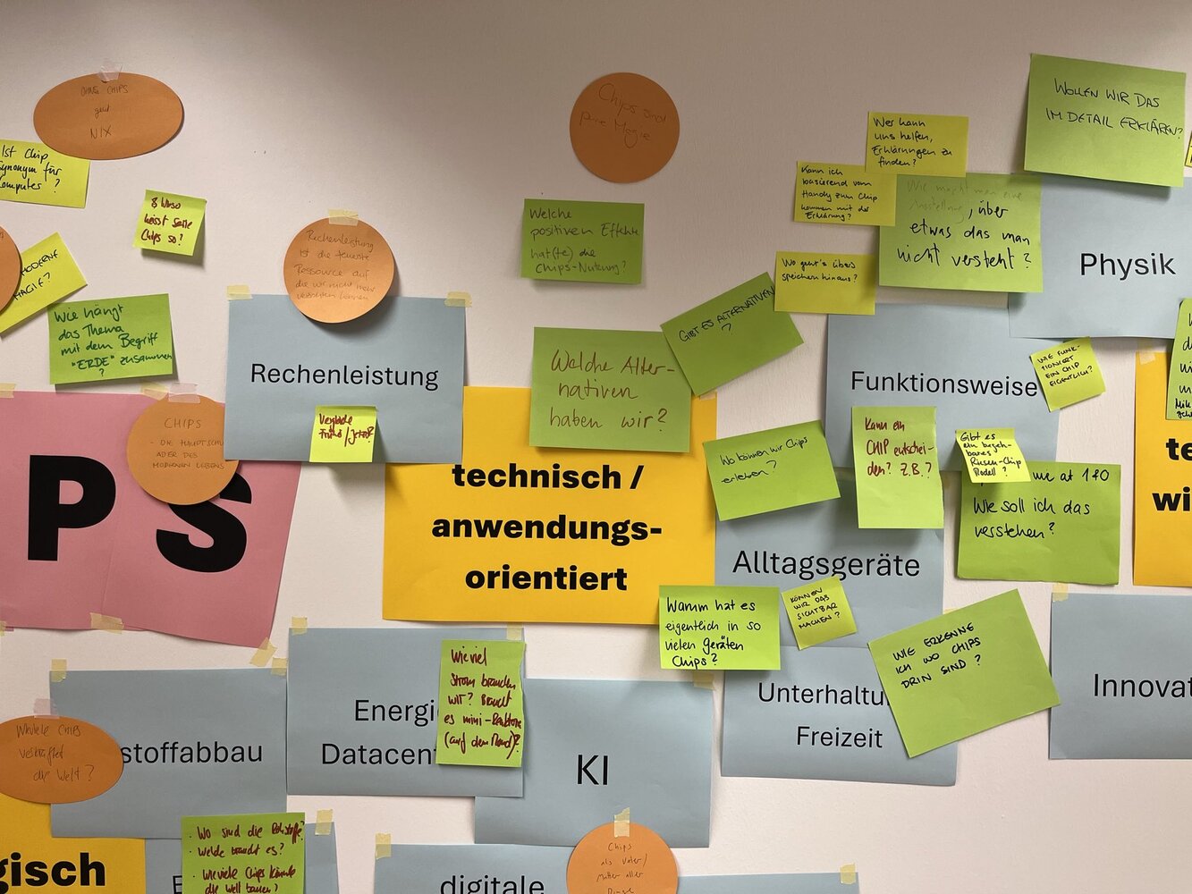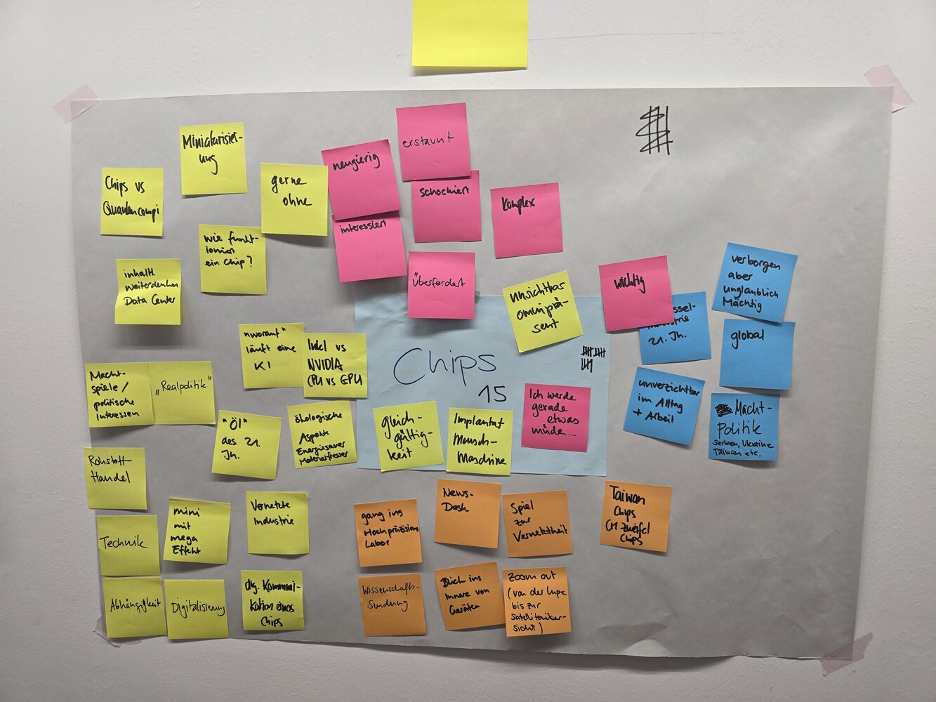April 2025: Zehn Themen hängen an den Wänden im Raum. Wir haben knapp drei Stunden Zeit, um ihr Potential abzuklopfen. Wir prüfen, wo wir spontan ins Assoziieren kommen, welche Emotionen geweckt werden, welche Bezüge wir herstellen können und wo wir Lust auf mehr Vertiefung entwickeln. Am Ende der Sitzung haben wir drei Favoriten: unterwegs, Kriminalität und Chips (das Elektronikbauteil, nicht die essbaren). Nachdem wir von der Geschäftsleitung grünes Licht für die Weiterarbeit erhalten, stürzen wir uns in die Grundlagenrecherche. Arbeitsteilig klären wir ab, was andere Häuser programmieren, wie die Medien über unsere Themen berichten, welche Bezüge zum Lehrplan wir finden und was sich darüber erzählen lässt. Wir erstellen zu jedem Thema einen Kurzbeschrieb und ein Recherchedossier. In einer Umfrage holen wir das Feedback des ganzen Museums zu unseren drei Themenvorschlägen ab.