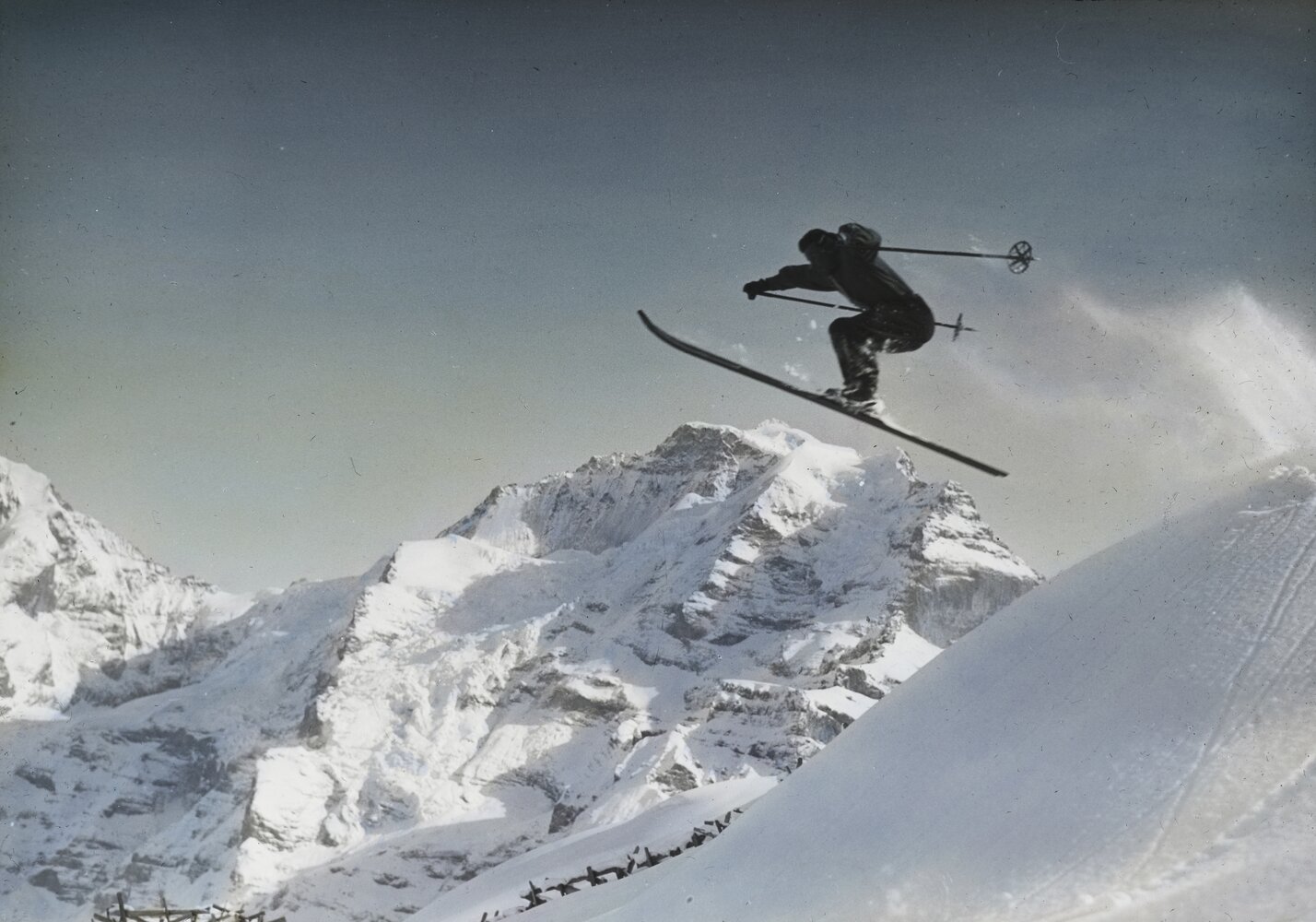 Gewisse Bilder sehen heute sehr ähnlich aus wie vor hundert Jahren. Kinder mit strahlenden Augen auf dem Schlitten, verspielte Erwachsene, elegante Schwünge im Tiefschnee, waghalsige Sprünge mit dem Ski an den Füssen. Beim genauen Hinschauen erstaunt das einigermassen, wenn man bedenkt, dass die Skiausrüstung in dieser Zeit noch ganz anders aussah. Kaum einer von uns würde wohl heute mit den Holzbrettern von damals noch eine gute Figur im Schnee machen, geschwiege denn einen grösseren Sprung wagen!