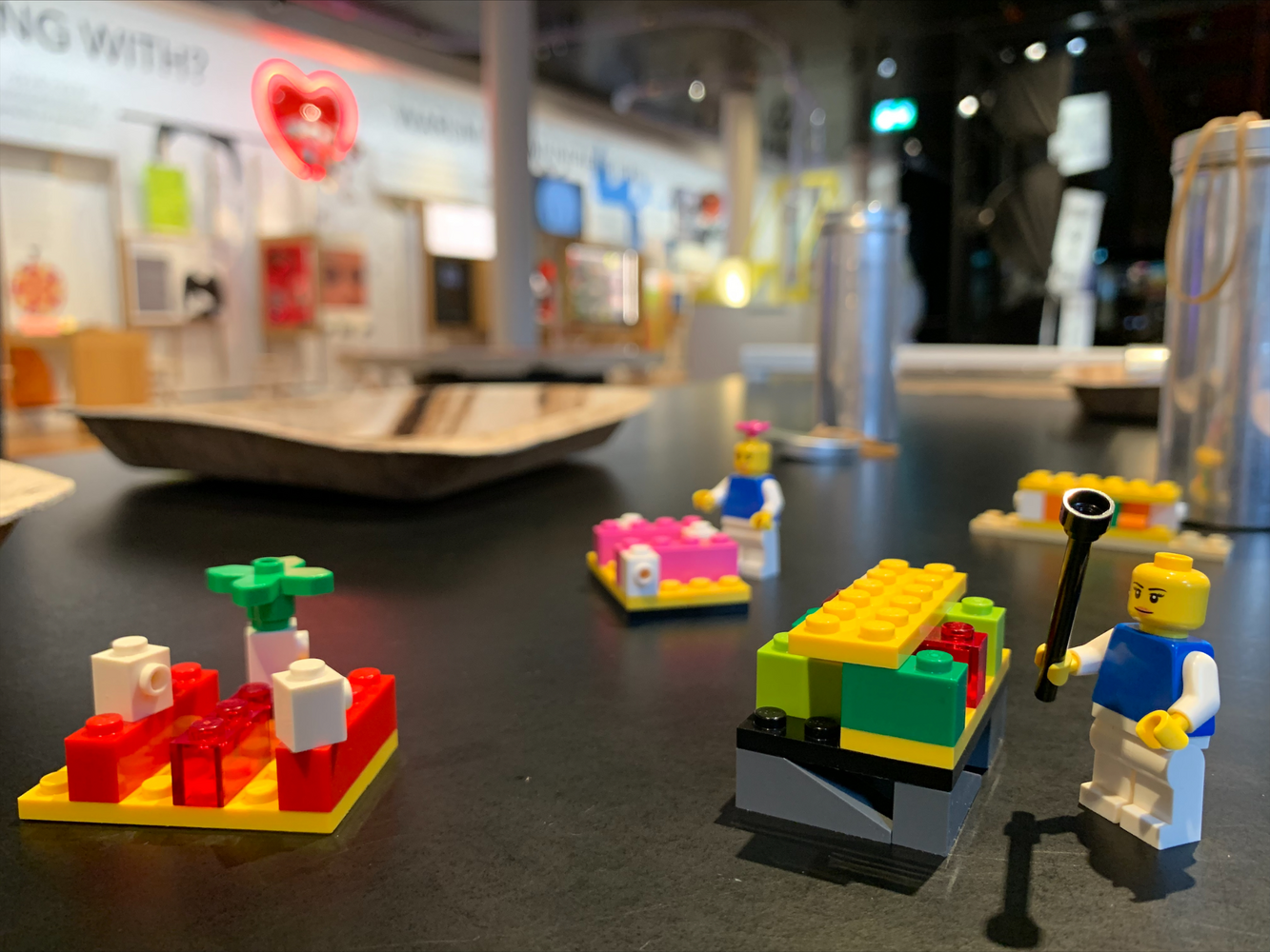 La mission, à cette grande table à manger : construire, en 3 minutes, avec le set de Lego à disposition, son repas ou plat préféré. Pas d’autres consignes, outre celles-ci : il n’y a ni de juste, ni de faux – donc allez-y ! et on peut voler les idées des autres, mais jamais les Lego. Hihi.
